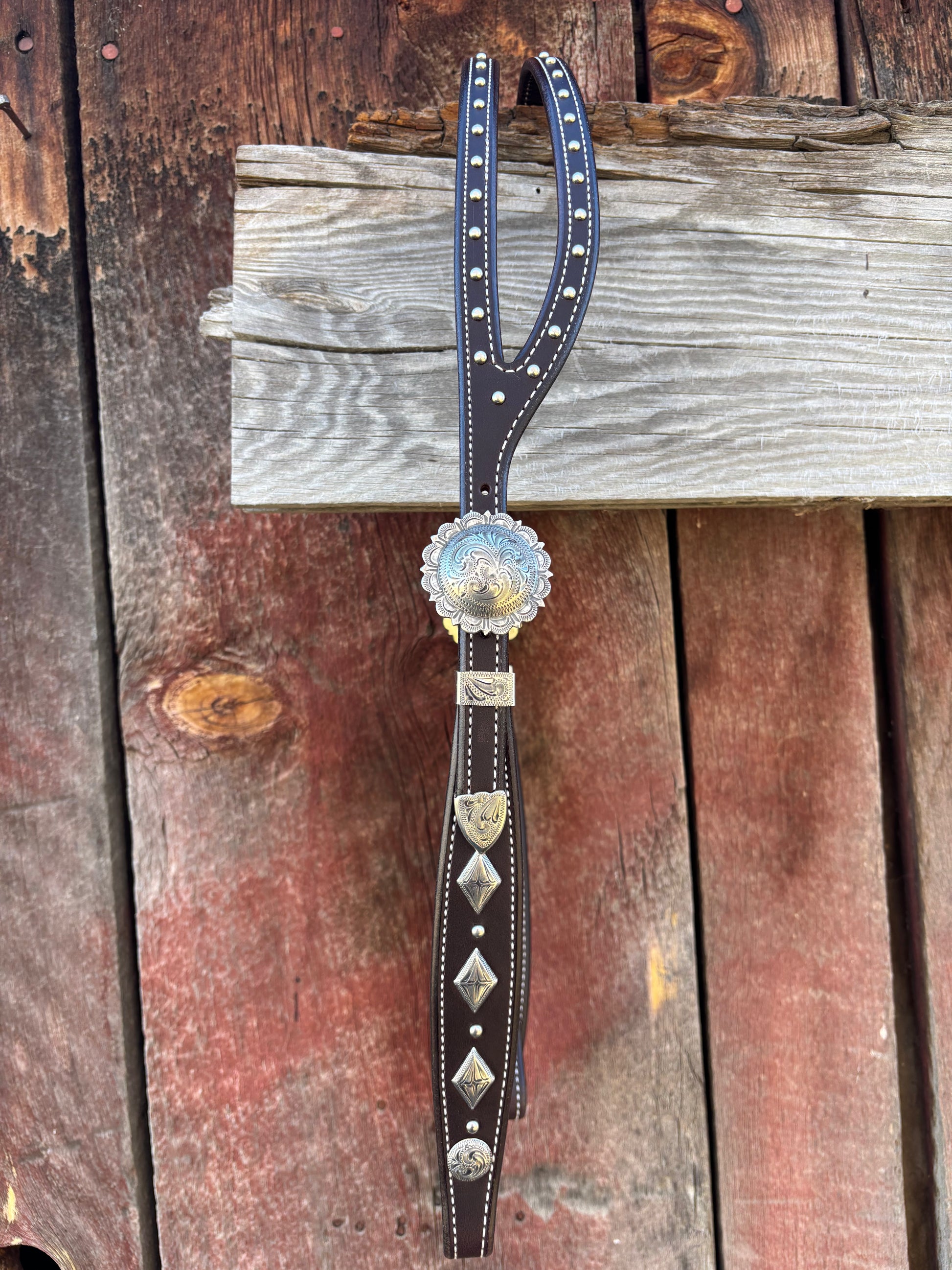 Built on the same pattern as our card suit headstall, this headstall features three large diamonds on the cheeks.